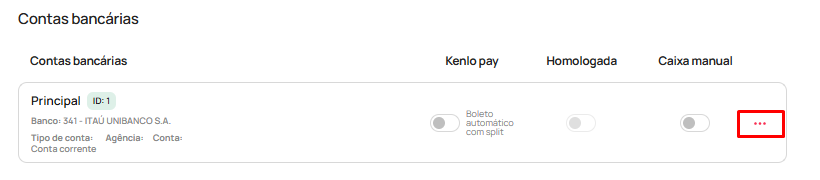 Se a Forma de recebimento já estiver cadastrada e quiser apenas ativar, clique nos três pontinhos