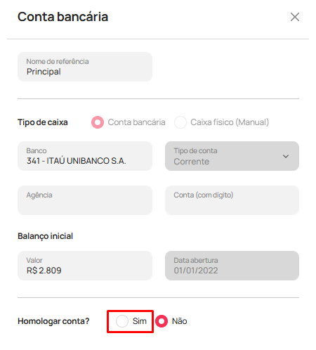 Em seguida, em Homologar conta, clique em Sim e Salve: