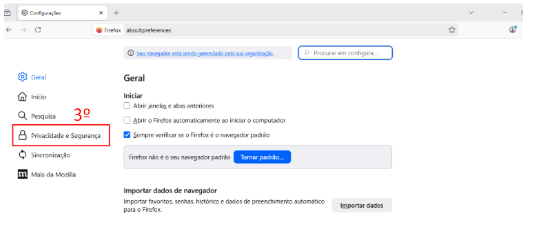 - Selecione o painel "Privacidade e Segurança" (3)
