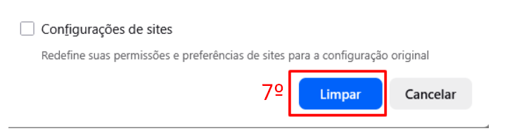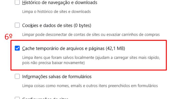- Certifique-se de que somente a opção "Cache temporário de arquivos e páginas" esteja marcado (6)